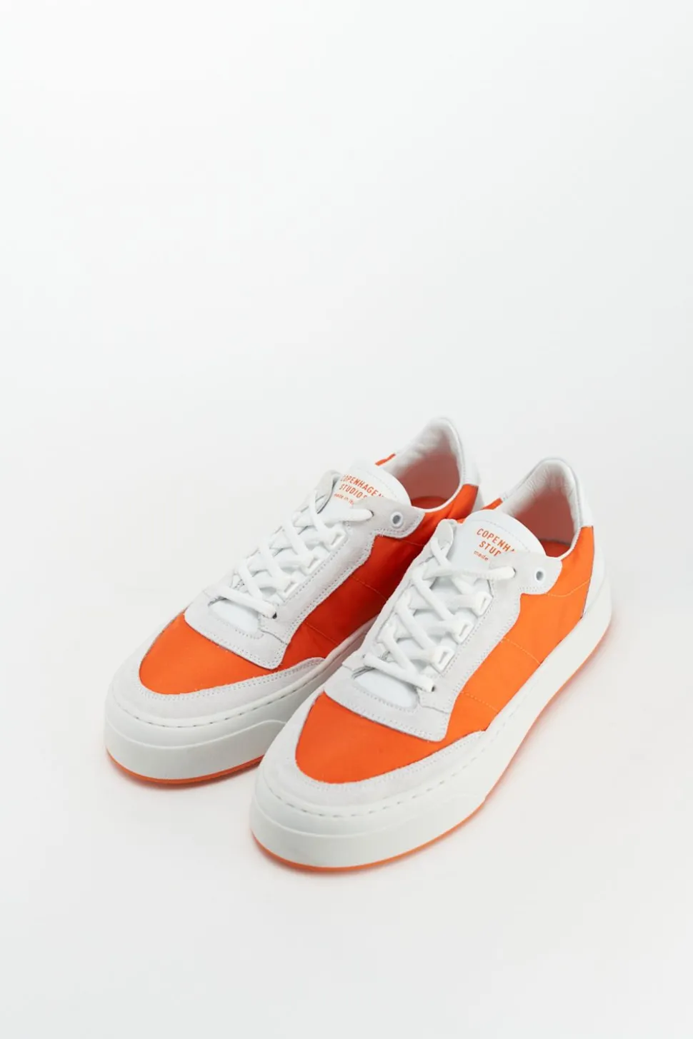 In Helder Oranje. Lage Sneakers Gemaakt Van Nylon En Glad Leer. Retrosilhouet. Contrasterende Elementen En Geborduurde Details. Vetersluiting Aan De Voorkant. Branding Op De Tong Van De Schoen. Rubberen Zool In Dezelfde Kleur Met Spatbord En Logo Op De Achterkant. Iets Taps Toelopende Vorm. Retro Sneakers Met Een Moderne Twist En Intense Contrasten.Onze Schoenen Zijn Ontworpen In Kopenhagen En Gemaakt In Europa. Het Leer Is Afkomstig Van Geselecteerde, Door Een Familie Gerunde Fabrieken In Italië.