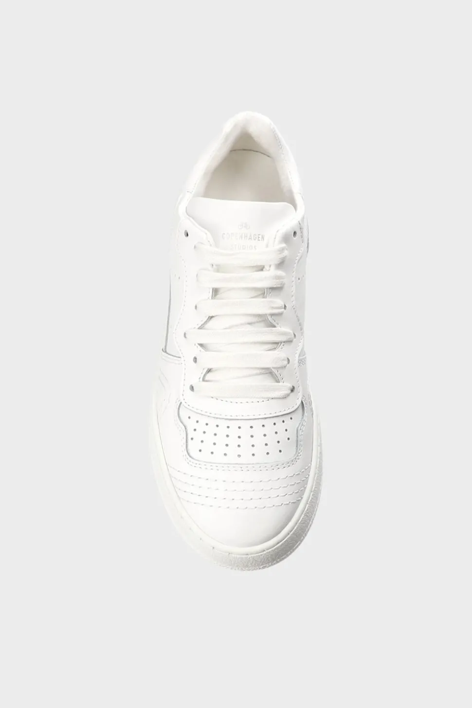 In Het Wit. Lage Sneakers Gemaakt Van Glad Leer. Met Geborduurde Details En Geometrische, Geperforeerde Patronen. Tweekleurige Platformzool Met Logo. Logoprint Op De Tong. Subtiele Branding Aan De Buitenkant. Een Relaxte Stijl Voor Elke Dag.Onze Schoenen Zijn Ontworpen In Kopenhagen En Gemaakt In Europa. Het Leer Komt Uit Geselecteerde Familiebedrijven In Italië.