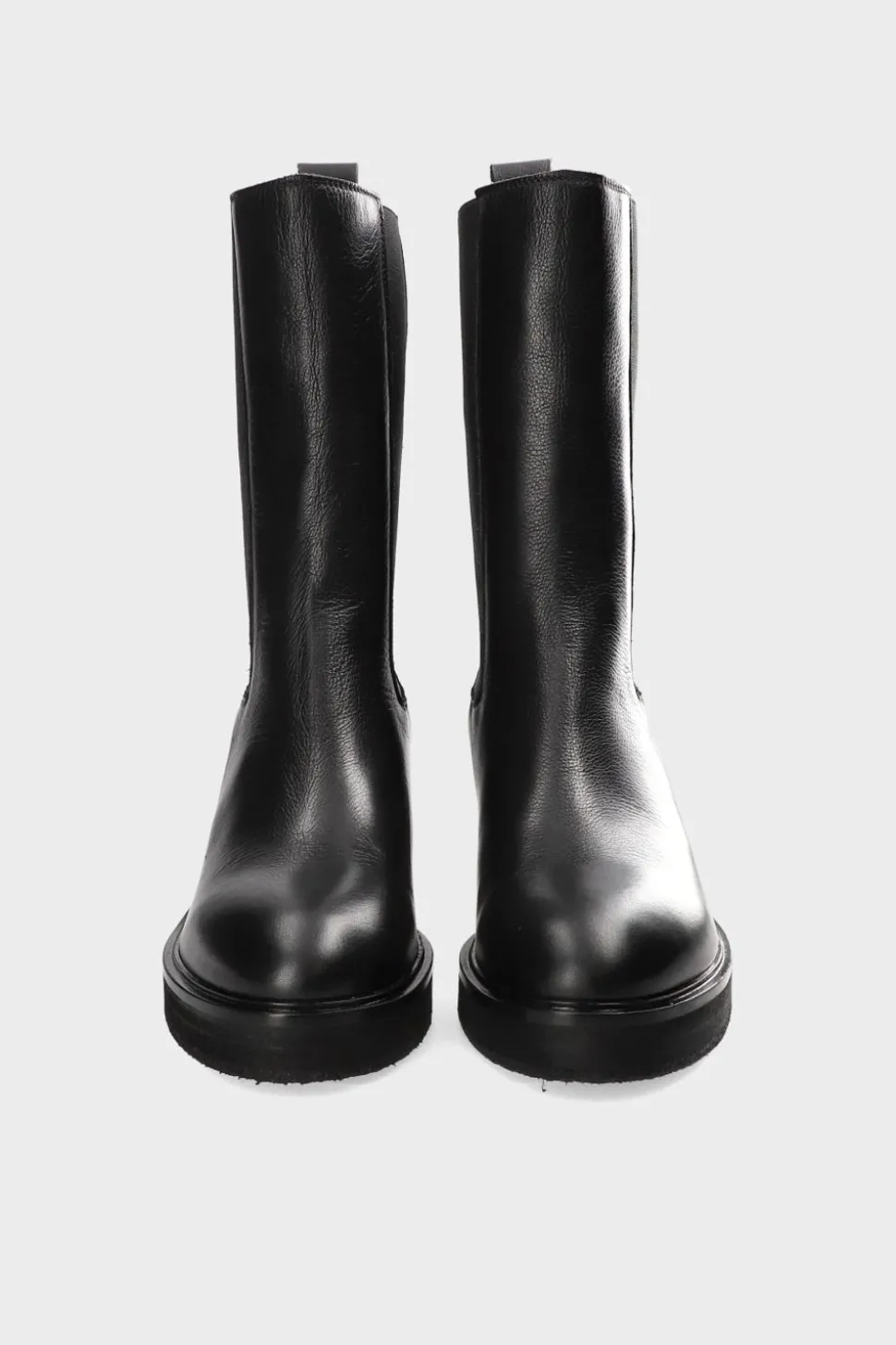 In Het Zwart. Hoge Laarzen Gemaakt Van Glad Leer. Met Geborduurde Details En Een Treklusje Op De Schacht. Elastische Inzetstukken Aan De Zijkanten. Een Expressieve Stijl Die Een Elegante Indruk Achterlaat.Onze Schoenen Zijn Ontworpen In Kopenhagen En Vervaardigd In Europa. Het Leer Komt Uit Geselecteerde, Door Een Familie Gerunde Fabrieken In Italië.