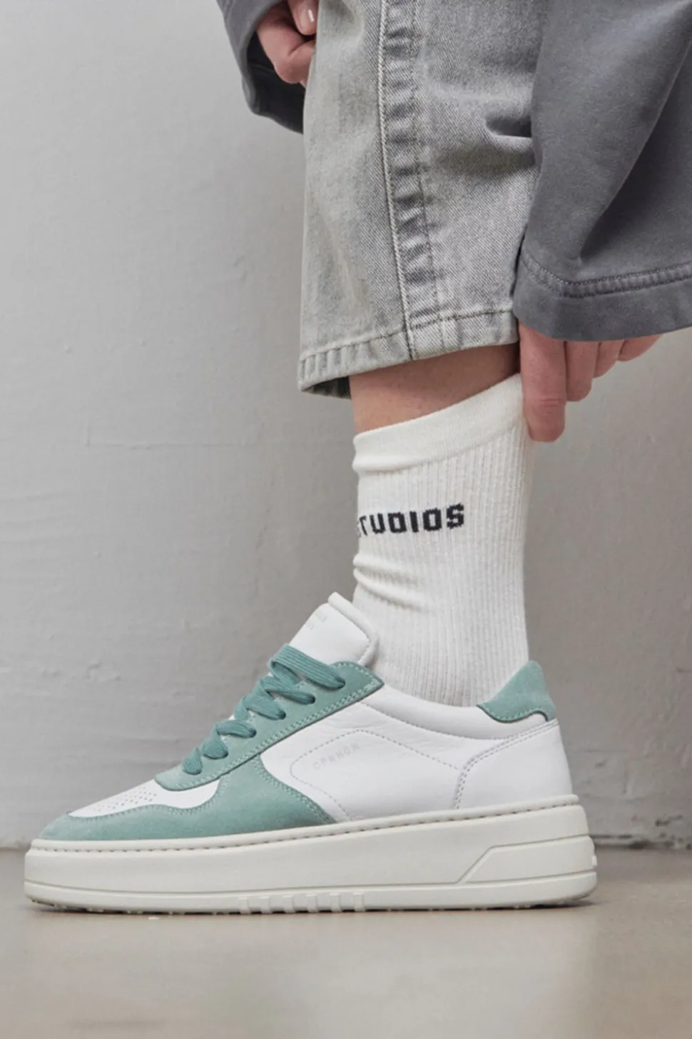 In Wit En Salie. Lage Sneakers Gemaakt Van Een Leermix. Grof Silhouet. Contrasterende Elementen Met Geborduurde Details En Geperforeerde Patronen. Logo Aan De Buitenkant En Achterkant Van De Zool. Vetersluiting Aan De Voorkant. Ronde Dop. Sportieve ‘Scooter’ Zool Met Licht Profiel. Sportieve Retro Sneakers In Zachte Kleurnuances.Onze Schoenen Zijn Ontworpen In Kopenhagen En Vervaardigd In Europa. Het Leer Is Afkomstig Van Geselecteerde, Door Een Familie Gerunde Fabrieken In Italië.