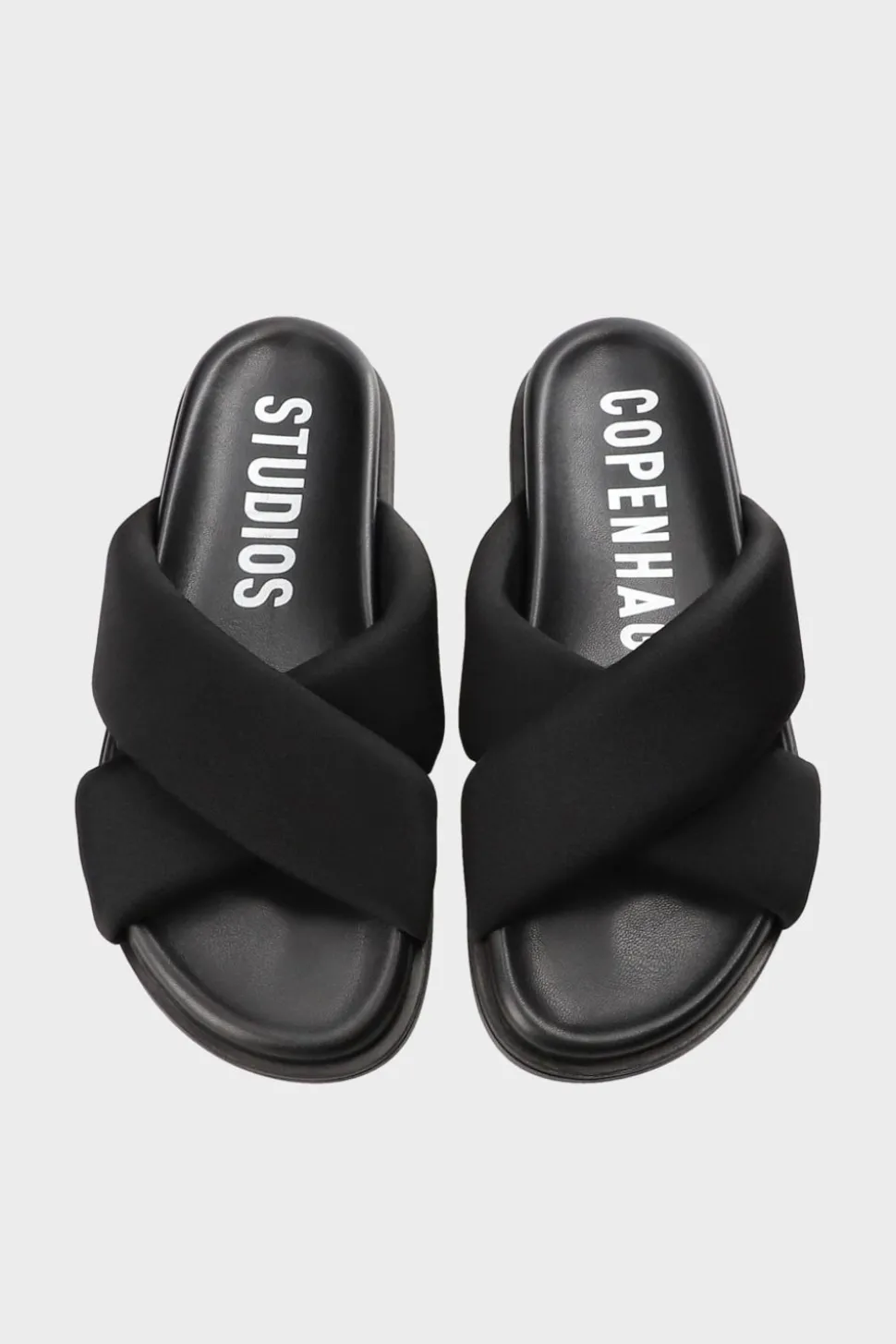 In Het Zwart. Vegan-Slipsandalen Gemaakt Van Zacht Neopreen. Gekruist Silhouet. Met Twee Gekruiste, Gewatteerde Bandjes. Binnenzool Met Een Lichtgewicht Anatomisch Voetbed En Opvallende Branding. Platte Rubberen Zool. Minimalistische Slippers Met Zachte Details.Onze Schoenen Zijn Ontworpen In Kopenhagen En Gemaakt In Europa.